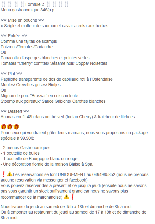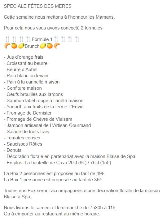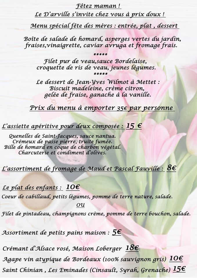 pas de menu fête des mères mais menu classique